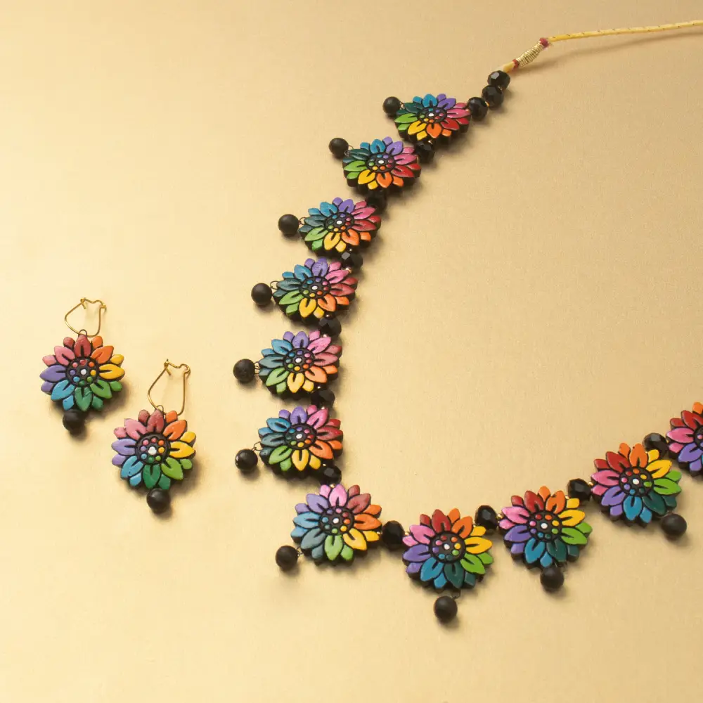 Flowery Terracotta Jewellery Set – Shop Handmade Terracotta Jewellery Online