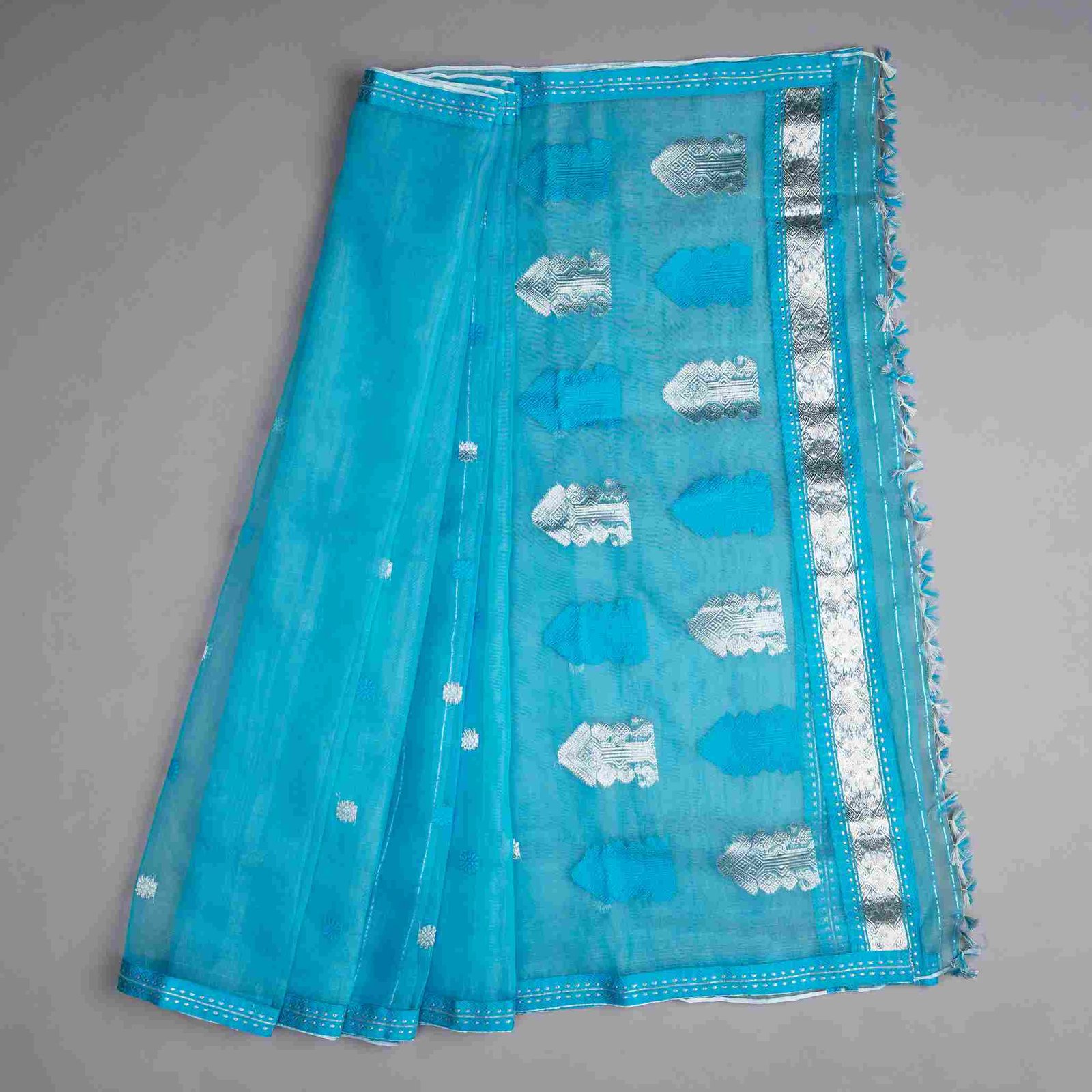 Discover the Ice Petal saree—a pure Nuni Cotton silk treasure from Assam. Handwoven and lightweight, it shines with soft gloss and traditional motifs, perfect for festive or formal occasions.