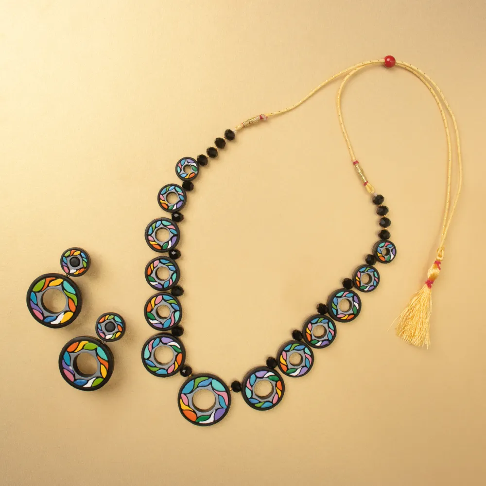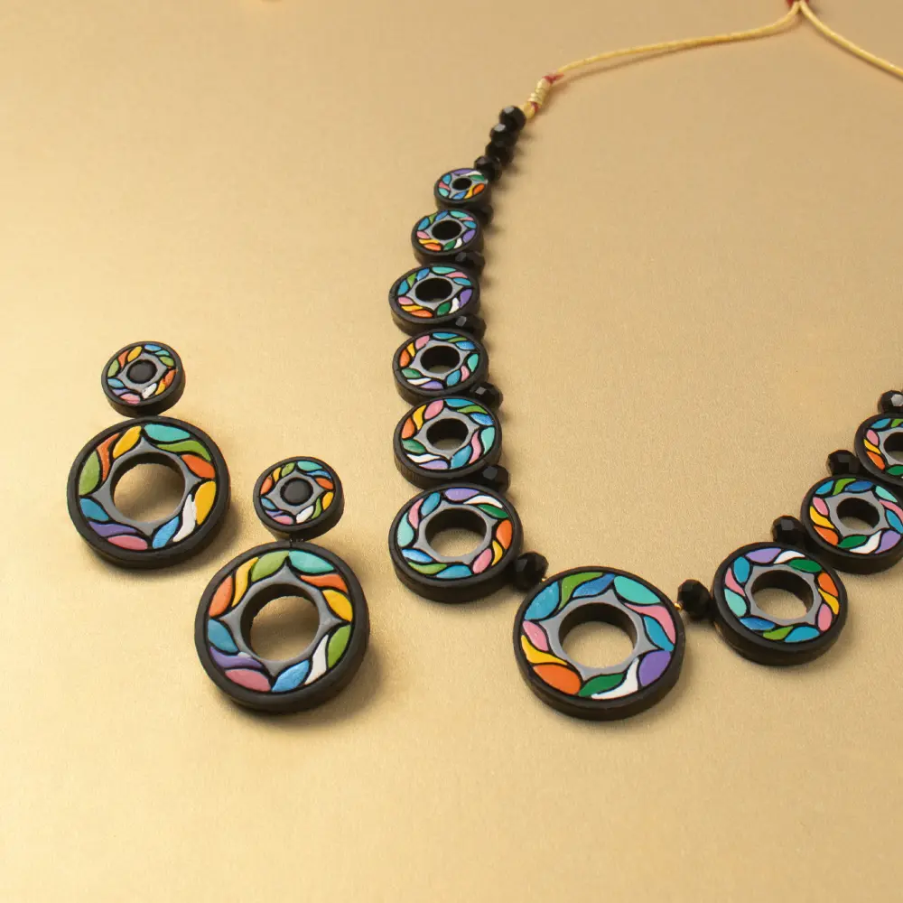 Looking for unique terracotta Jewellery online? The Ringlets necklace set is handmade with care, crafted from natural clay using age-old techniques from Bengal.